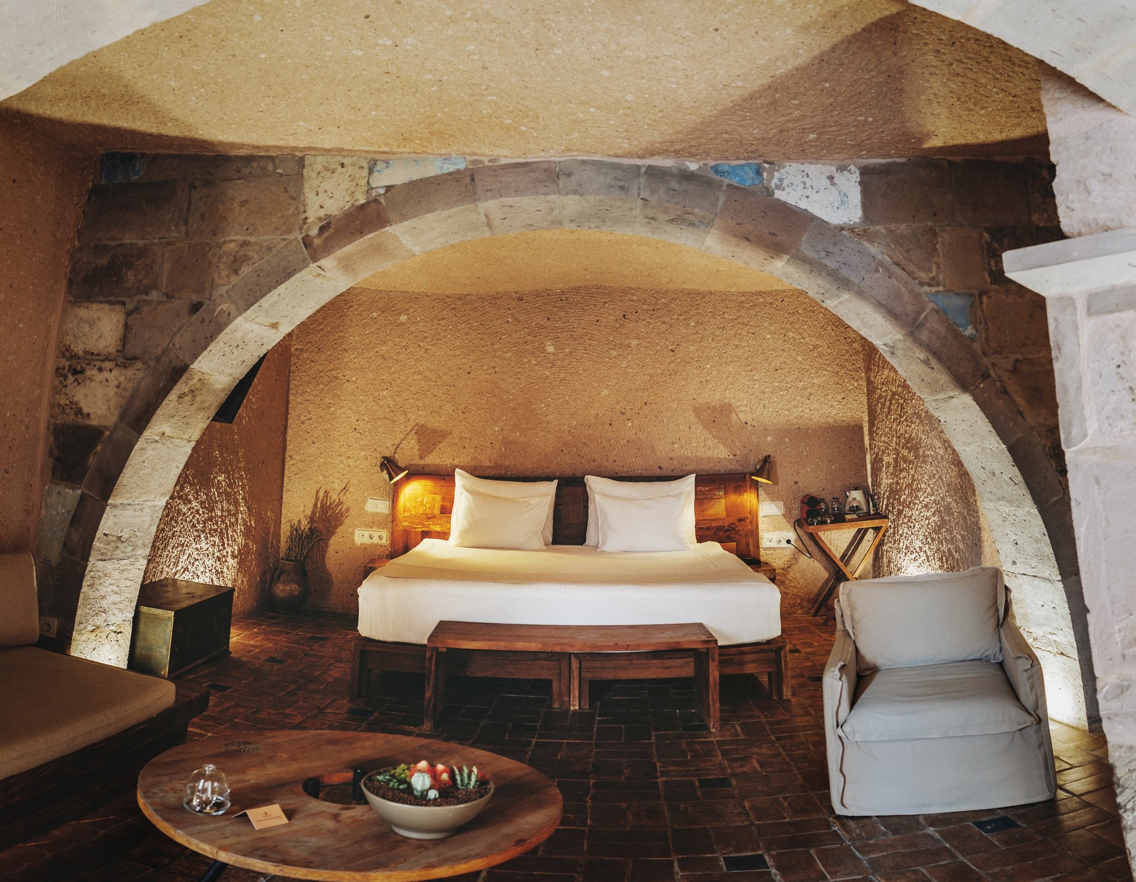 Suites (40 sqm) offer fireplaces, bathtub or jacuzzi and cave experience.